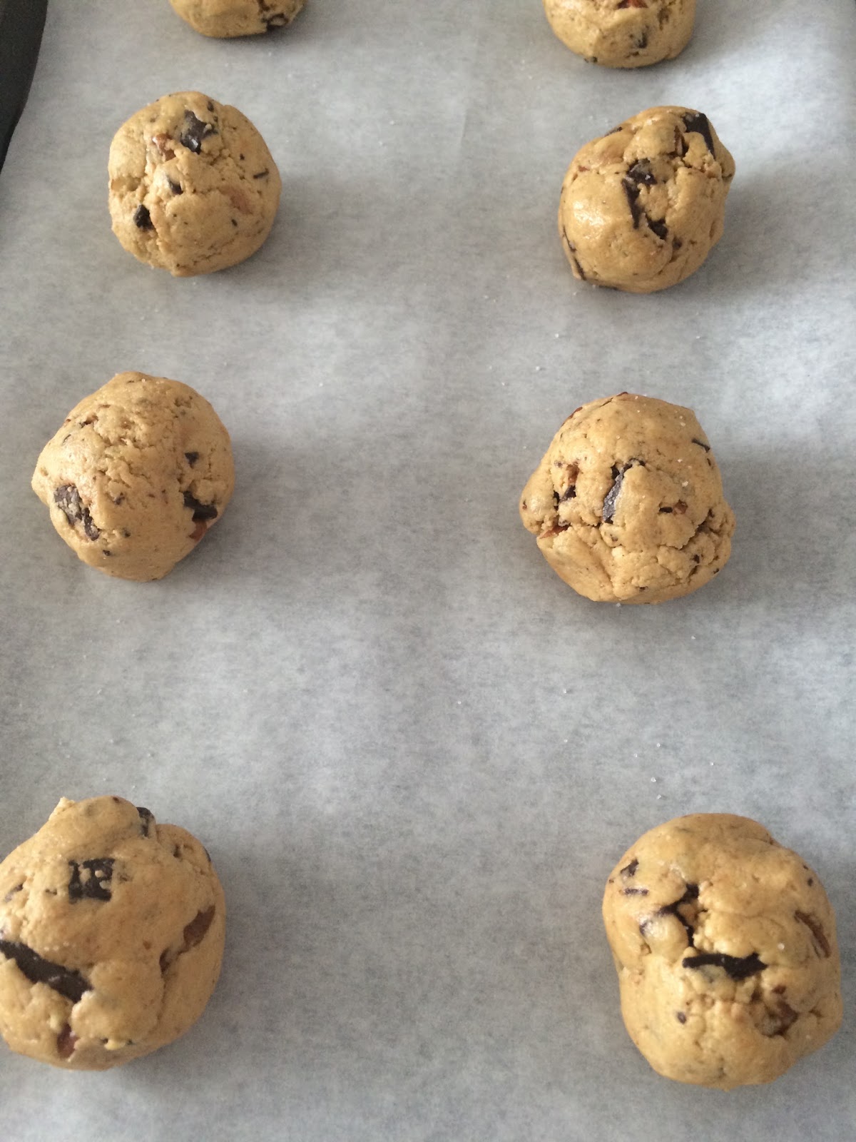 Scoop 2 tablespoon size balls of dough onto baking pans lined with parchment paper.