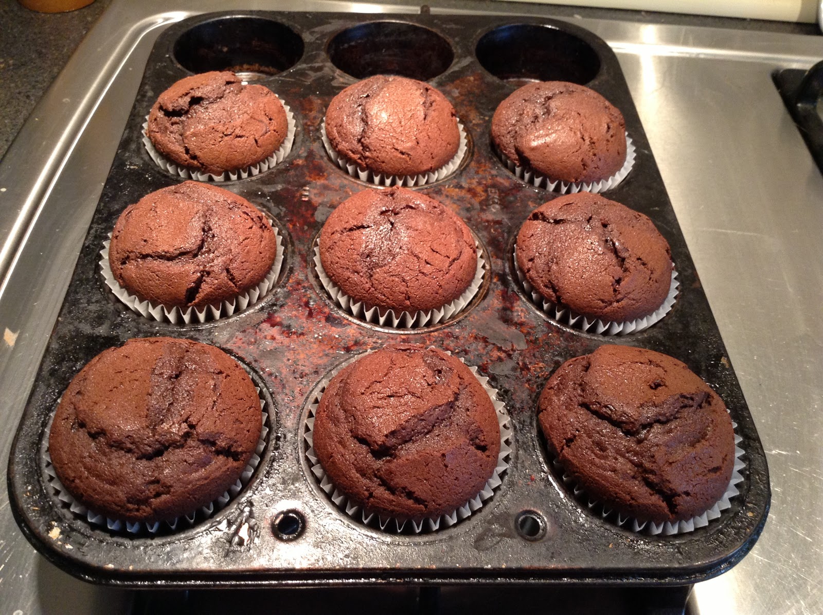 I filled up large muffin cups about 3/4 of the way – which made 9 cupcakes.