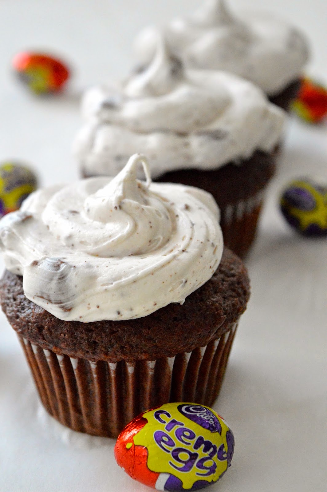 Using an electric mixer, mix in the chocolate and Creme Eggs.